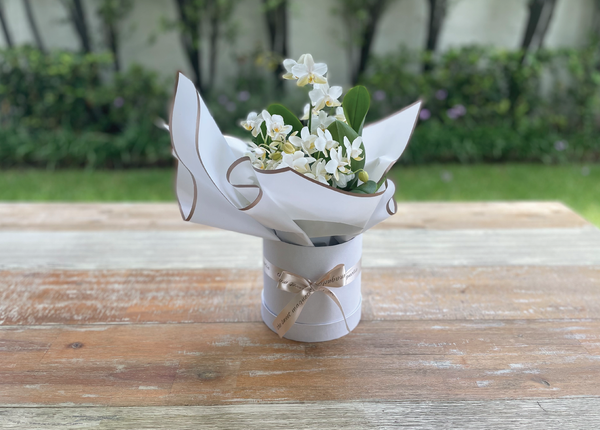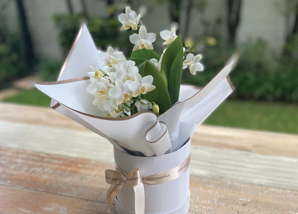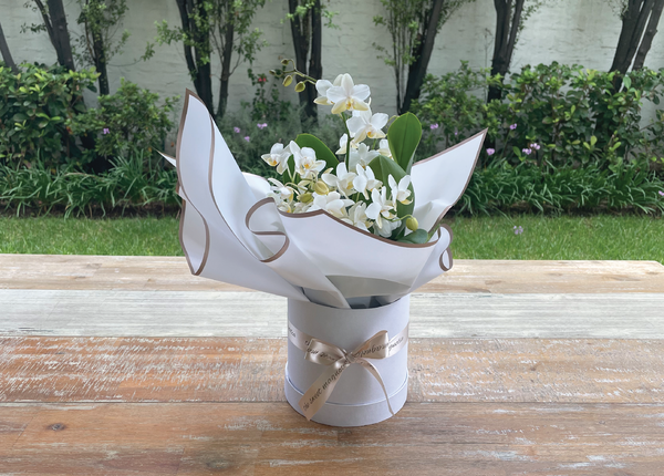 A carefully selected 2-stem or multi-stem Orchid* chosen fresh on the day packaged with beautiful paper in a white, ribboned hat box. The perfect gift for every occasion from birthday, to anniversary or just to say 'I love you'.